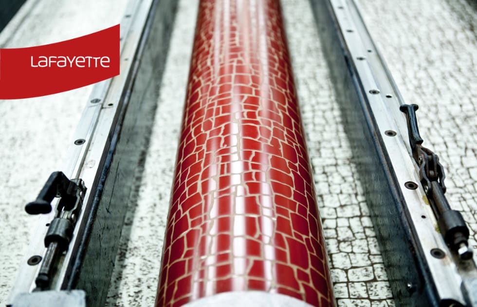 Subtle heat-and-pressure technique that creates shimmering, watermark-like designs on fabric. The color of the textile remains unchanged, while the surface gently catches the light for an elegant, refined effect.